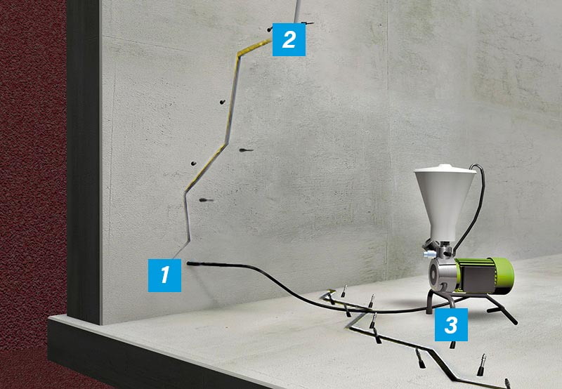 Trockene und feuchte Risse werden mit den Injektionsmaterialien von KÖSTER dauerhaft verschlossen.KÖSTER 2 IN 1 wird standardmäßig verwendet, um Risse gegen Wasser abzudichten.