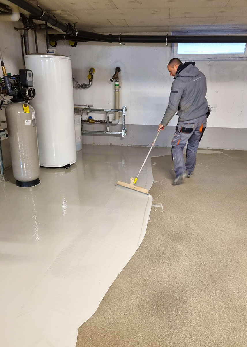 Polyurethan – Systeme werden hauptsächlich in Wohnzimmern, Schlafzimmern, Büros, Küchen, Bäder etc. verwendet – überall da, wo Laufkomfort und Trittschalldämmung gefragt ist. Hierfür setzten wir die selbstverlaufende Giessbeschichtung Flüssigkunststoff inkl. Fließbelag ein. Die Beschichtung dient zur Herstellung glatter, hoch dekorativer Bodenbeschichtungen.