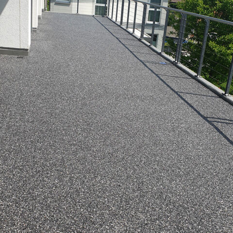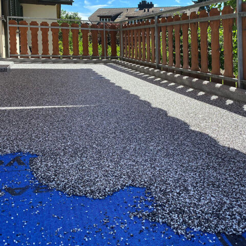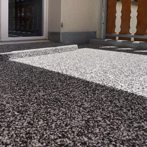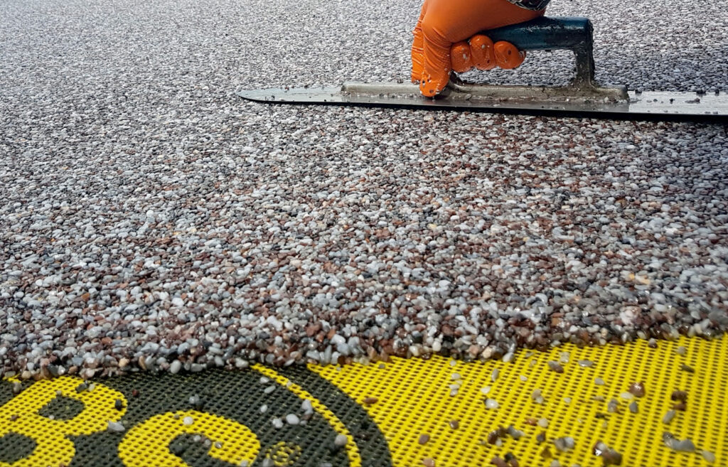 Als Bindemittel verwenden wir ein lösemittelfreies PUR Bindemittel. Dieses zweikomponentige Polyurethanharz besticht durch seine Licht- und UV- Stabilität. Durch die Verwendung des Bindemittels werden die Farben des Dekorbodenbelages optisch gehoben, und wirken dadurch um ein Vielfaches intensiver und kräftiger. Falls ein Bodenbelag ohne Drainagewirkung erstellt werden soll, kann eine Versiegelung PF verwendet werden um die Poren zu verschließen und einen glatten Bodenbelag herzustellen.